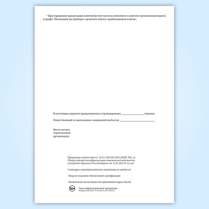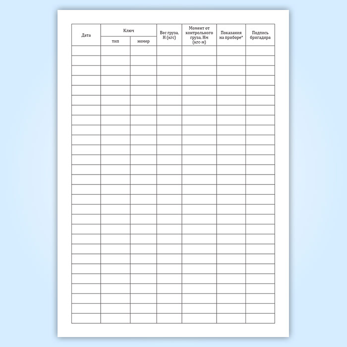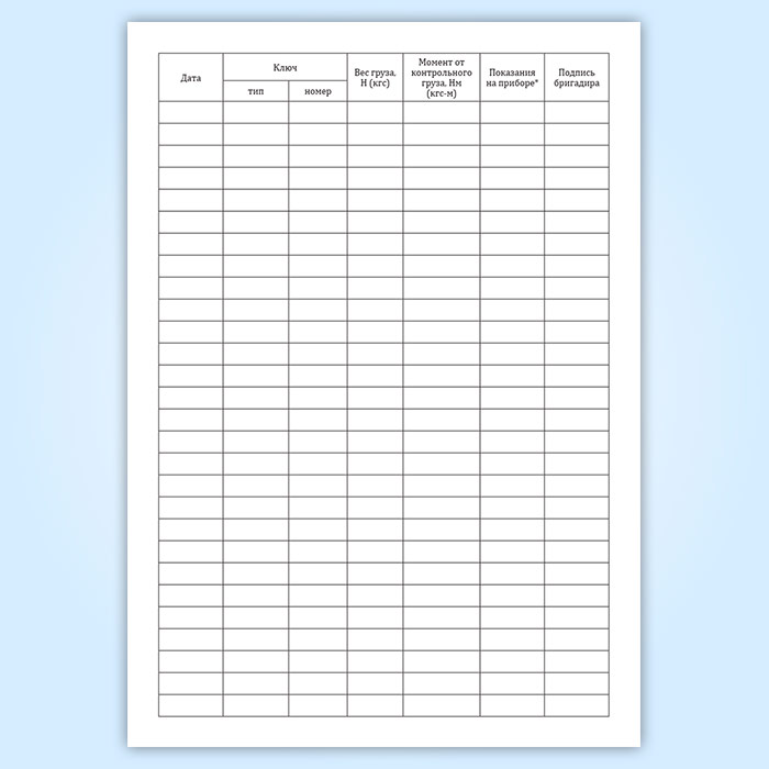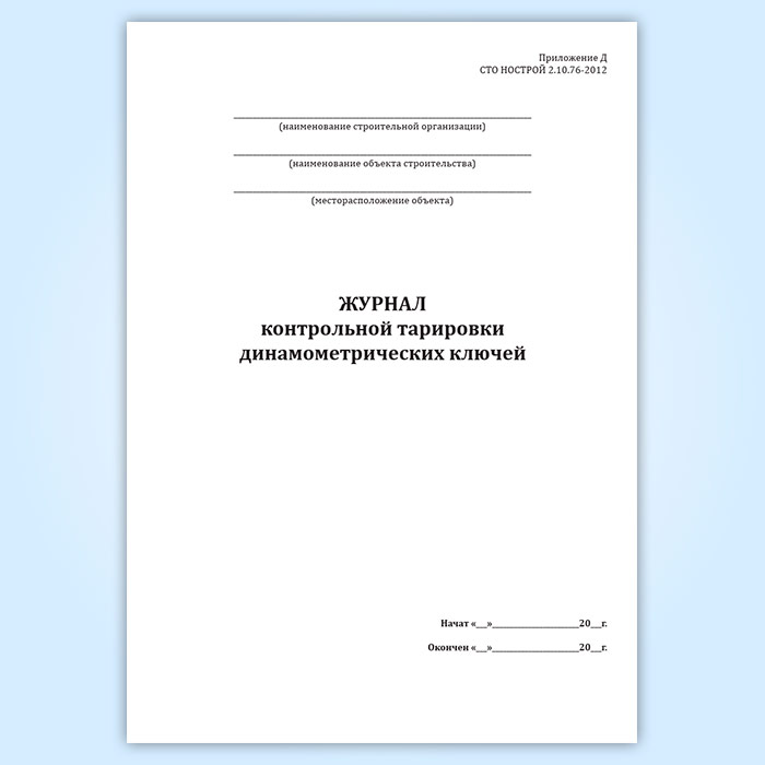 Журнал контрольной тарировки динамометрических ключей (СТО НОСТРОЙ 2.10.76-2012) в Магнитогорске купить