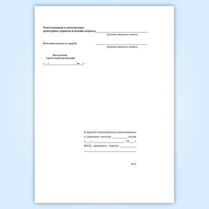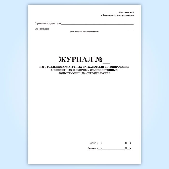 Журнал изготовления арматурных каркасов для бетонирования монолитных и сборных железобетонных конструкций на строительстве в Магнитогорске купить