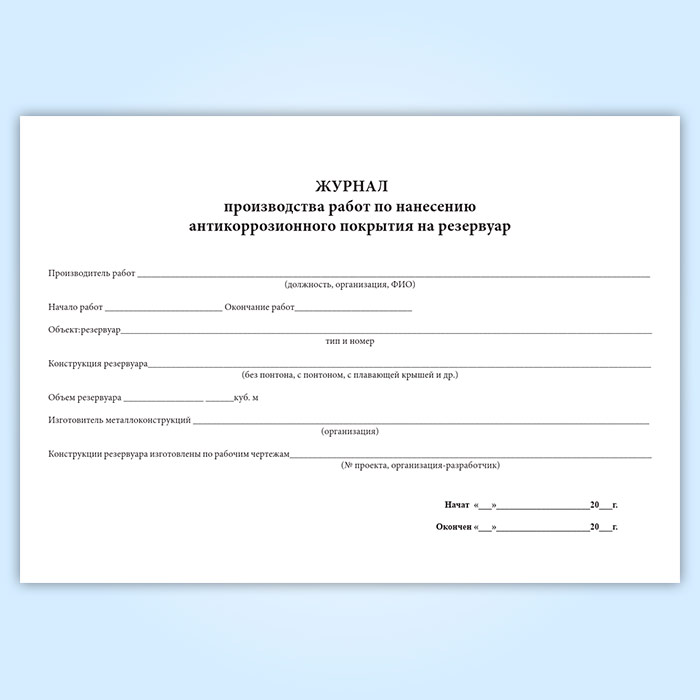 Журнал производства работ по нанесению антикоррозионного покрытия на резервуар в Магнитогорске купить