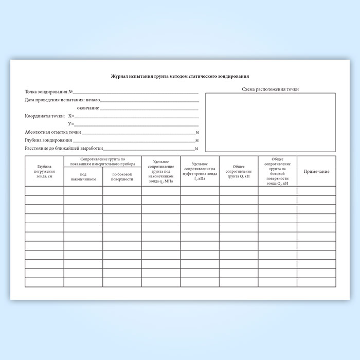 Журнал полевых испытаний грунтов статическим зондированием в Магнитогорске купить