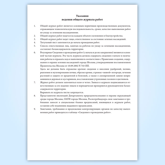 Общий журнал работ по уходу за зелеными насаждениями в Магнитогорске купить