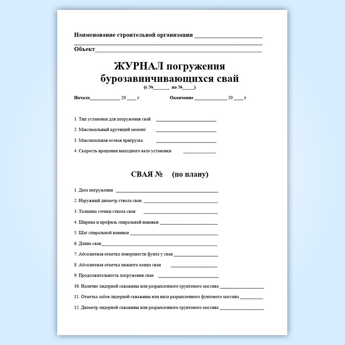 Журнал погружения бурозавинчивающихся свай в Магнитогорске купить