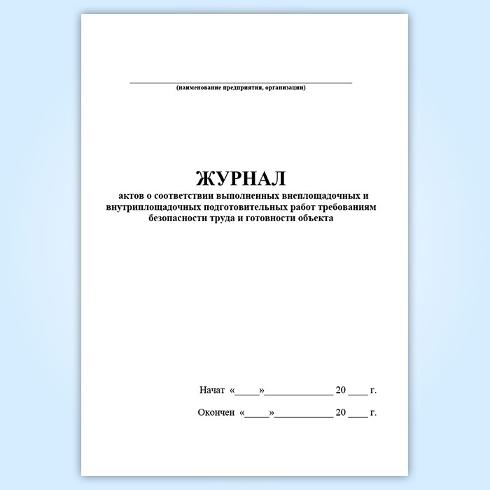 Журнал актов о соответствии выполненных внеплощадочных и внутриплощадочных подготовительных работ требованиям безопасности труда и готовности объекта в Магнитогорске купить