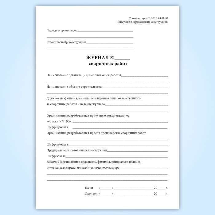 Журнал сварочных работ (СНиП 30301-87) в Магнитогорске купить