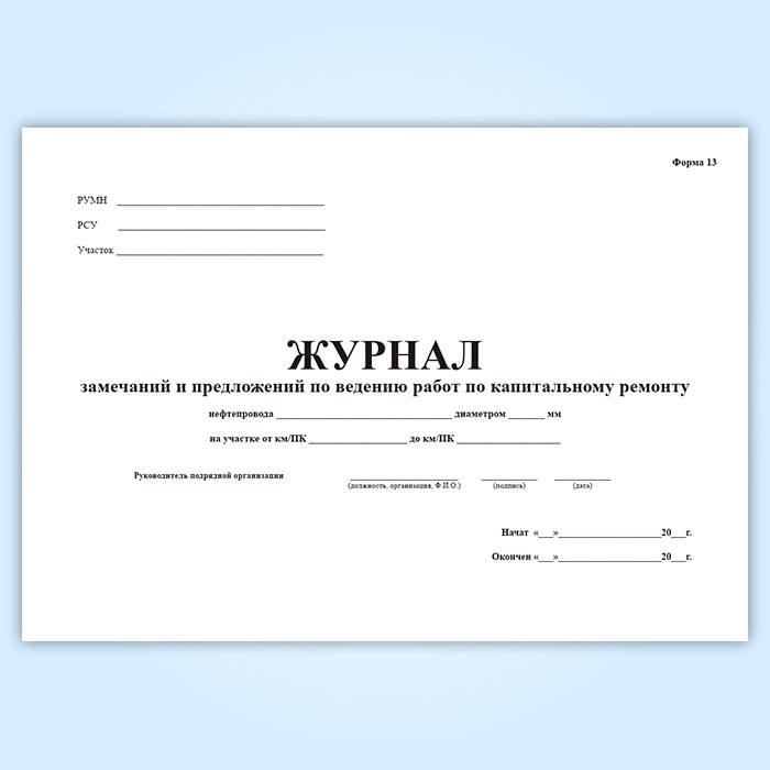 Журнал замечаний и предложений по ведению работ по капитальному ремонту в Магнитогорске купить