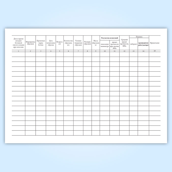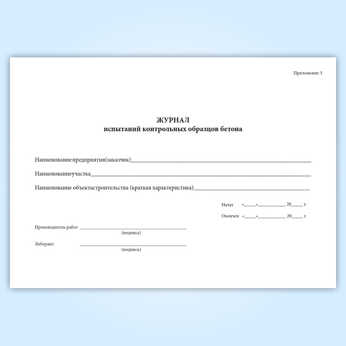 Журнал испытаний контрольных образцов бетона (ВСН 430-82) в Магнитогорске купить