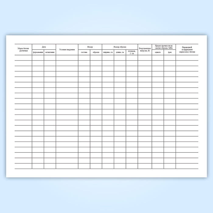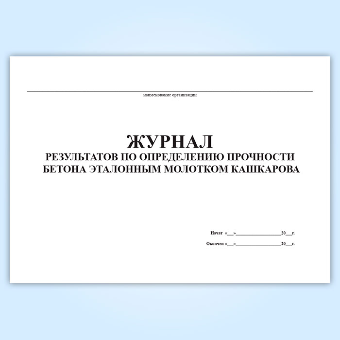 Журнал результатов по определению прочности бетона эталонным молотком Кашкарова в Магнитогорске купить