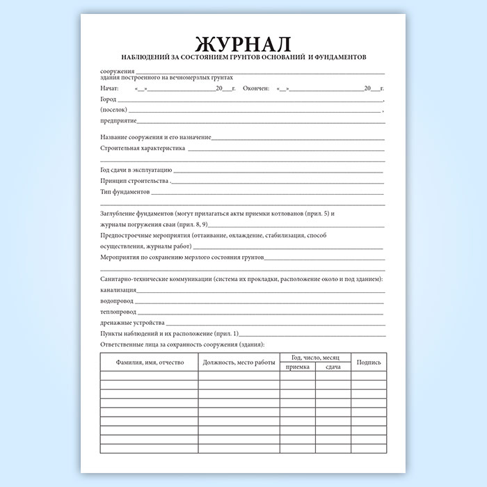 Журнал наблюдений за состоянием грунтов оснований и фундаментов в Магнитогорске купить