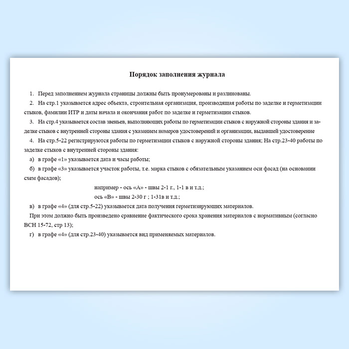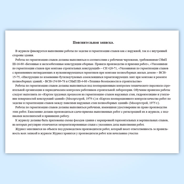 Журнал контроля качества производства работ по заделке и герметизации стыков полносборных зданий в Магнитогорске купить
