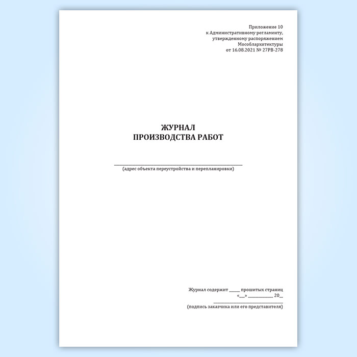 Журнал производства работ (Распоряжение Мособлархитектуры МО от 16.08.2021 N 27РВ-278) в Магнитогорске купить