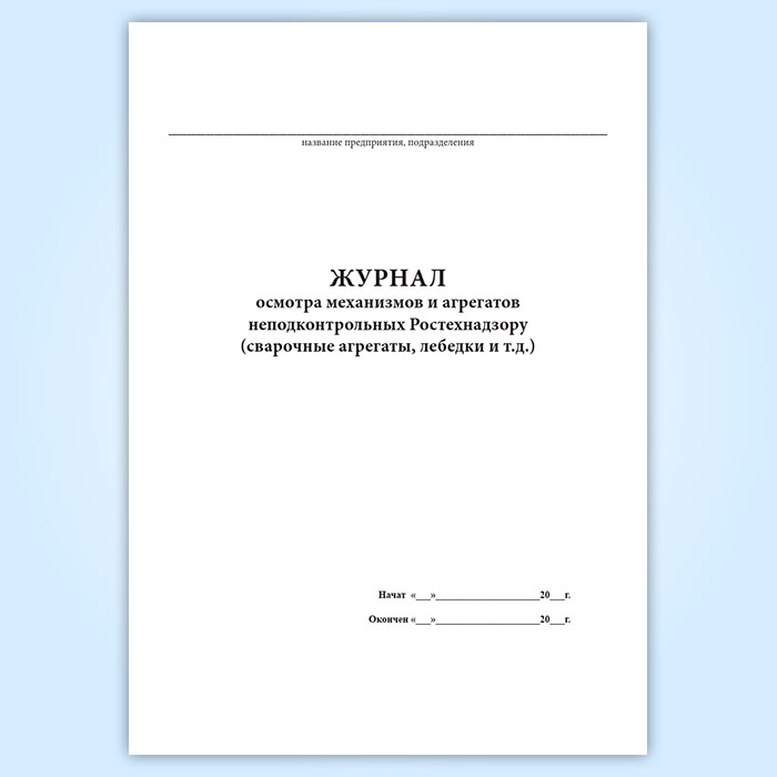 Журнал осмотра механизмов и агрегатов неподконтрольных Ростехнадзору в Магнитогорске купить