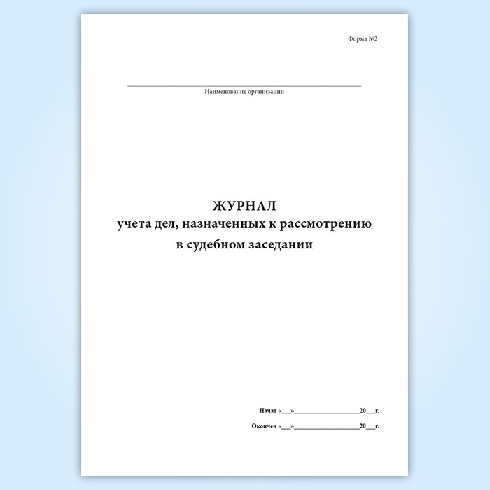 Журнал учета дел, назначенных к рассмотрению в судебном заседании (форма № 2) в Магнитогорске купить
