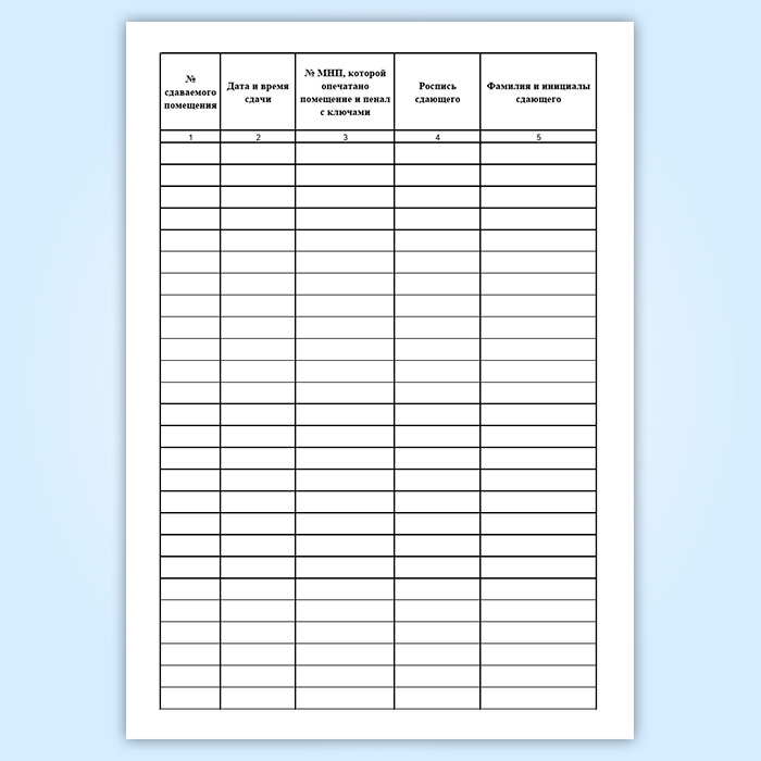 Журнал приема-выдачи ключей и приема помещений под охрану, размещенных на территории в Магнитогорске купить