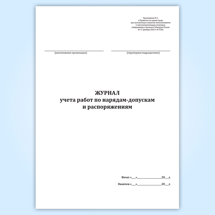 Журнал учета работ по нарядам-допускам и распоряжениям (для объектов теплоснабжения и теплопотребляющих установок) в Магнитогорске купить