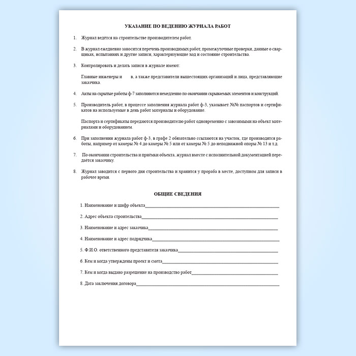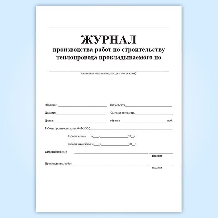 Журнал производства работ по строительству теплопровода в Магнитогорске купить