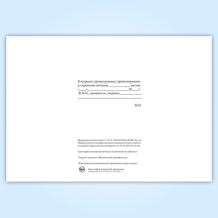 Вы получаете печатную продукцию прошнурованной и c местом для вашей печати в соответствии с действующими нормативными документами: