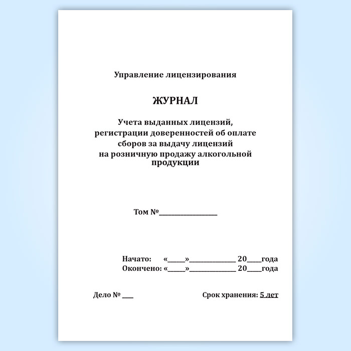 Журнал учета выданных лицензий, регистрации доверенностей об оплате сборов за выдачу лицензий на розничную продажу алкогольной продукции в Магнитогорске купить