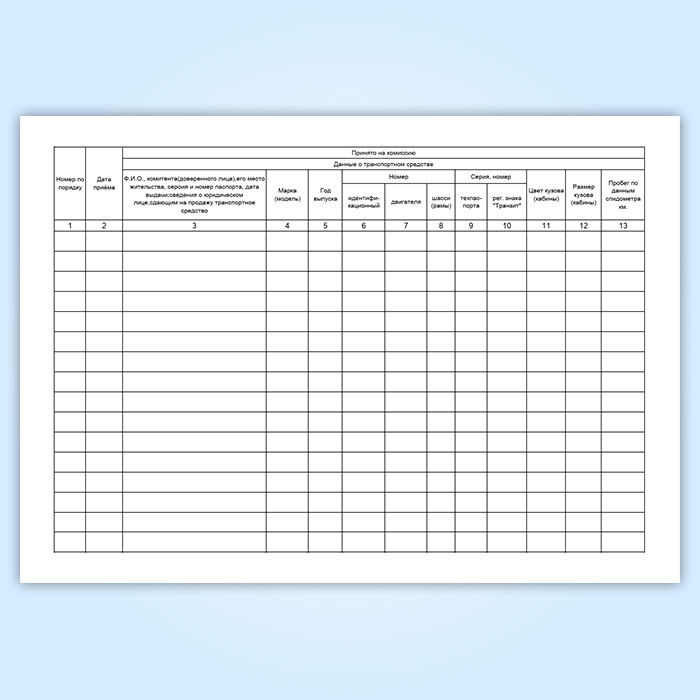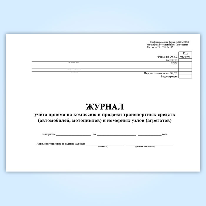 Журнал учета приема на комиссию и продажи транспортных средств (автомобилей, мотоциклов) и номерных узлов (агрегатов) (форма № КОМИС-8) в Магнитогорске купить