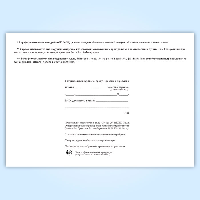Журнал учета нарушений порядка использования воздушного пространства в Магнитогорске купить