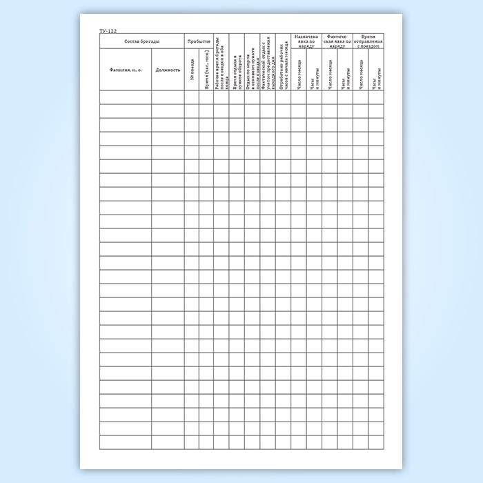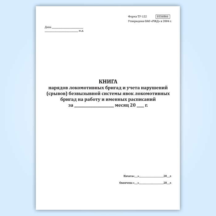 Книга нарядов локомотивных бригад и учета нарушений (срывов) безвызывной системы явок локомотивных бригад на работу и именных расписаний (форма ТУ-122) в Магнитогорске купить
