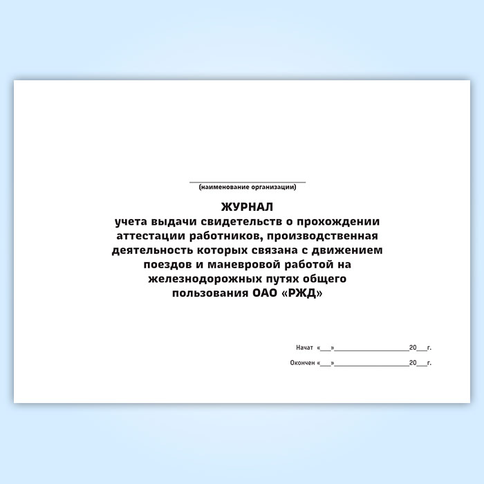 Журнал учета выдачи свидетельств о прохождении аттестации работников, производственная деятельность которых связана с движением поездов и маневровой работой на железнодорожных путях общего пользования ОАО «РЖД» в Магнитогорске купить