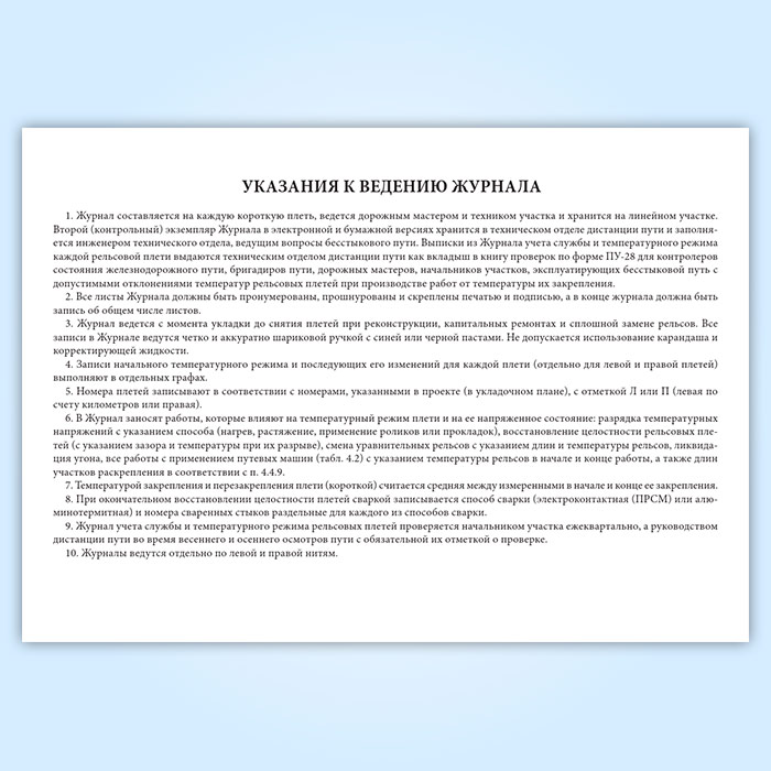 Журнал учета службы и температурного режима рельсовых плетей в Магнитогорске купить
