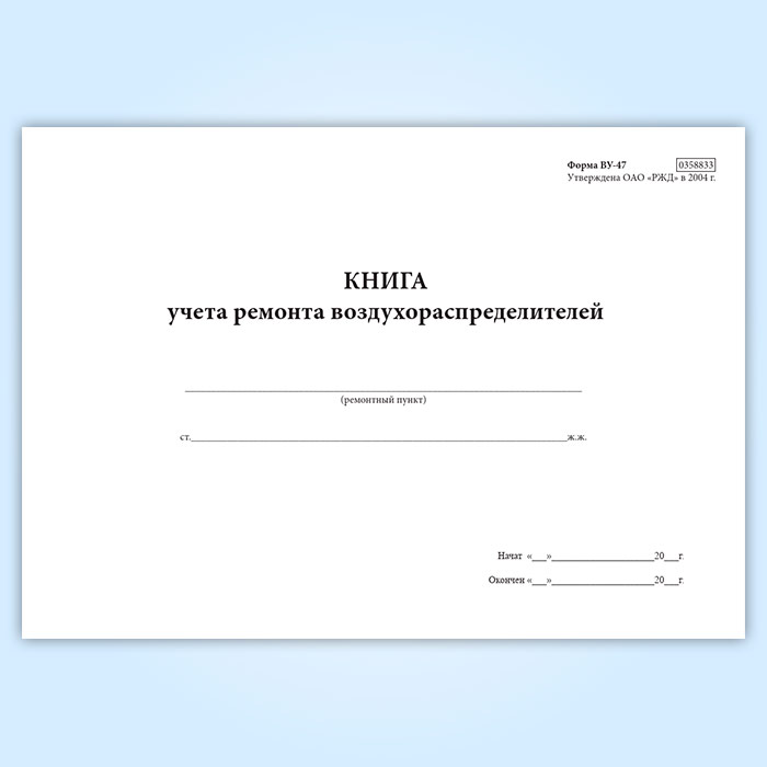 Книга учета ремонта воздухораспределителей (форма ВУ-47) в Магнитогорске купить