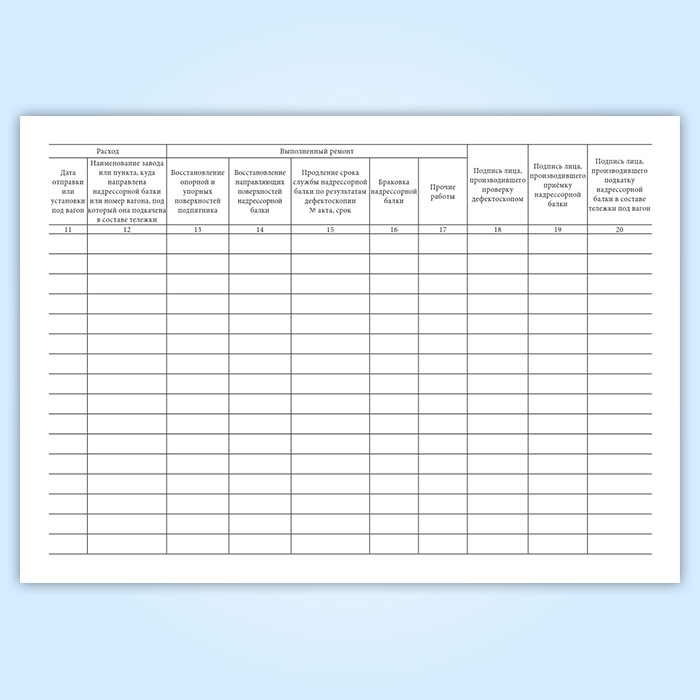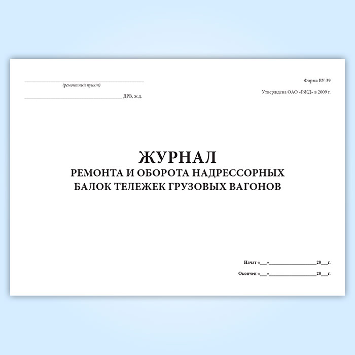 Журнал ремонта и оборота надрессорных балок тележек грузовых вагонов (форма ВУ-39) в Магнитогорске купить