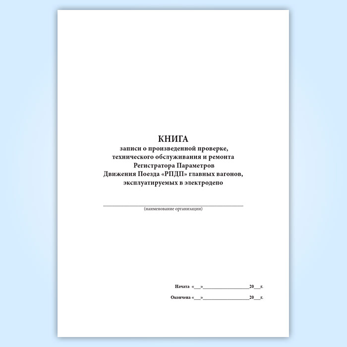 Книга записи о произведенной проверке, технического обслуживания и ремонта Регистратора Параметров Движения Поезда «РПДП» главных вагонов, эксплуатируемых в электродепо в Магнитогорске купить