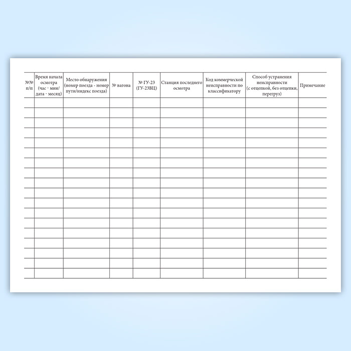 Книга регистрации коммерческих неисправностей вагонов в поездах в пунктах коммерческого осмотра (форма ГУ-98ВЦ) в Магнитогорске купить