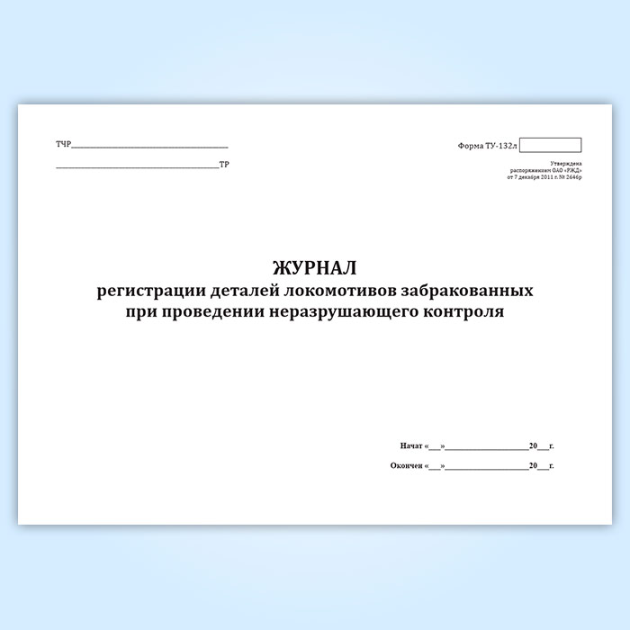 Журнал регистрации деталей локомотивов, забракованных при проведении неразрушающего контроля (форма ТУ-132л) в Магнитогорске купить