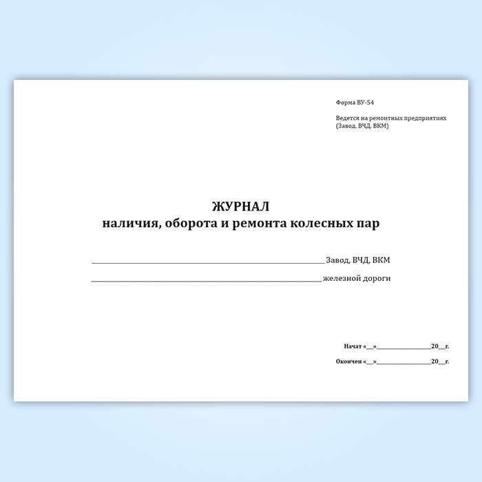 Журнал учета наличия, оборота и ремонта колесных пар (форма ВУ-54) в Магнитогорске купить