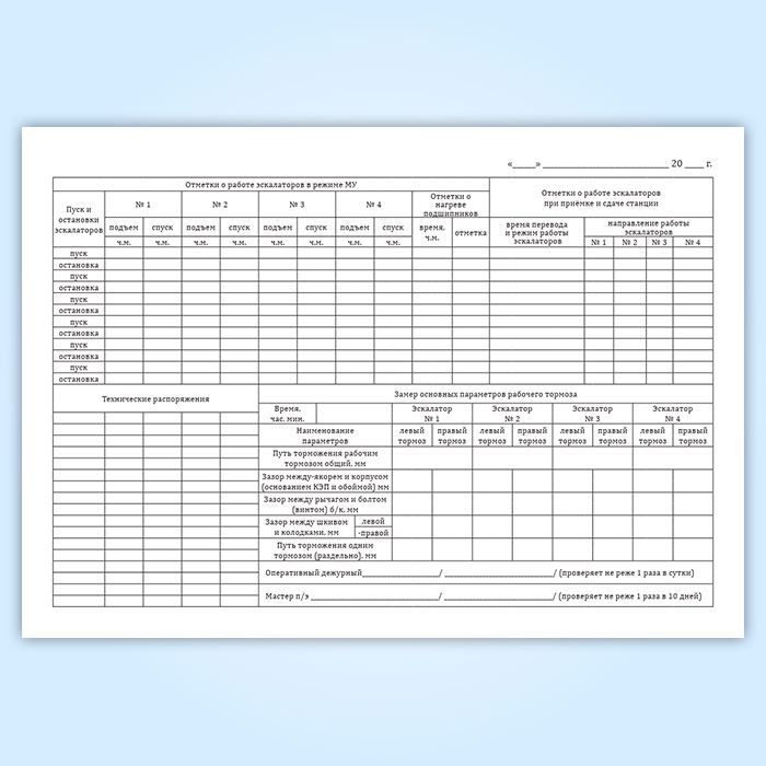 Журнал суточного учета работы эскалаторной станции (форма Муэс-1) в Магнитогорске купить