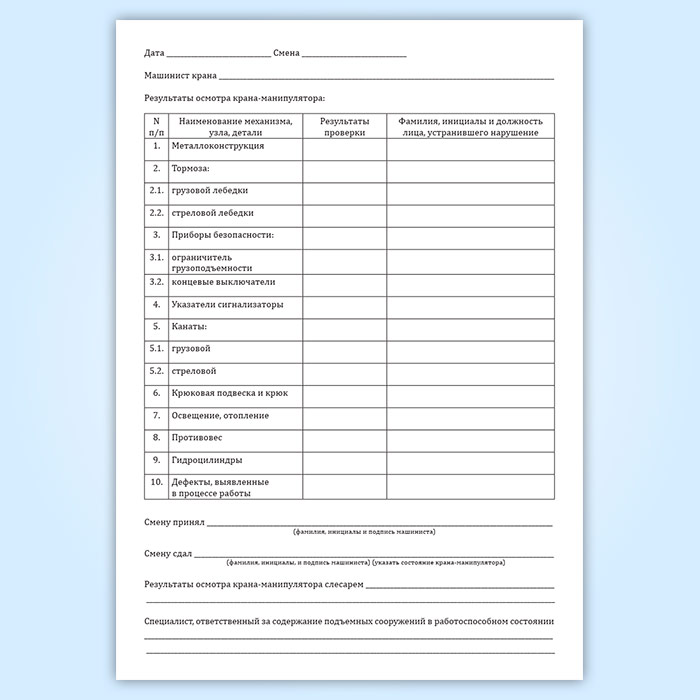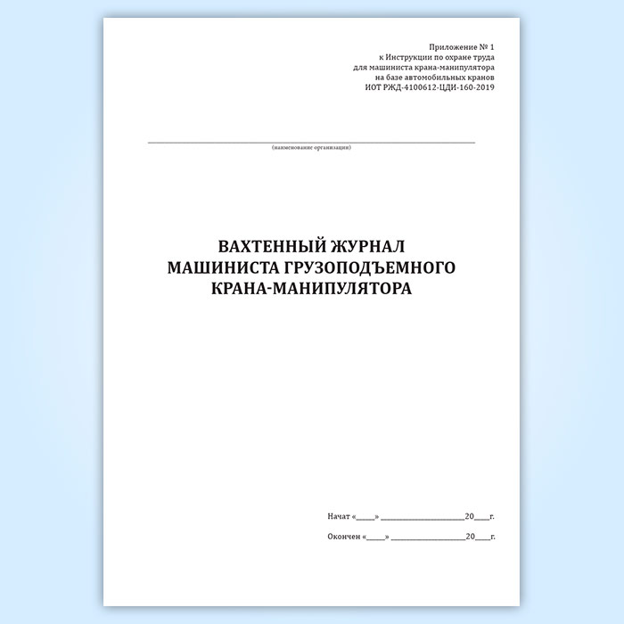 Вахтенный журнал машиниста грузоподъемного крана-манипулятора в Магнитогорске купить