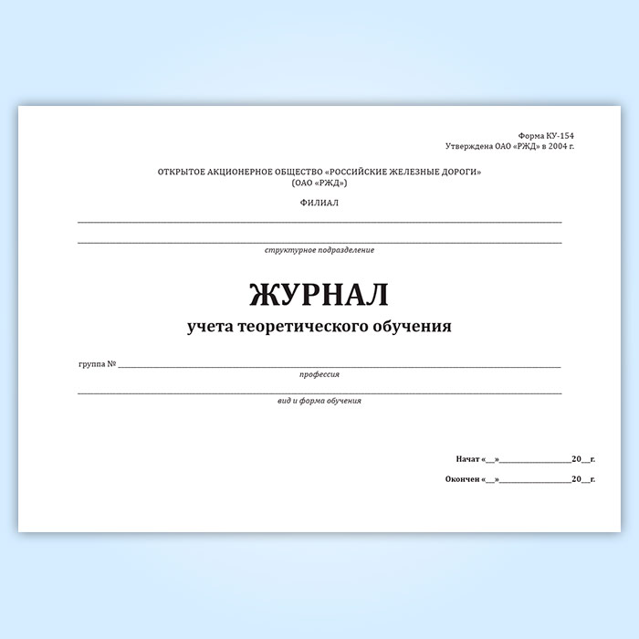 Журнал учета теоретического обучения (форма КУ-154) в Магнитогорске купить