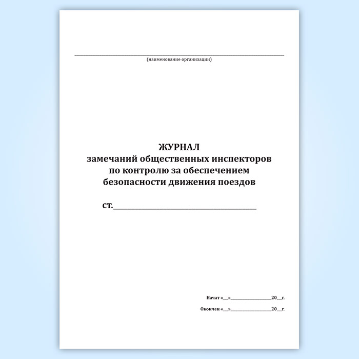 Журнал замечаний общественных инспекторов по контролю за обеспечением безопасности движения поездов в Магнитогорске купить