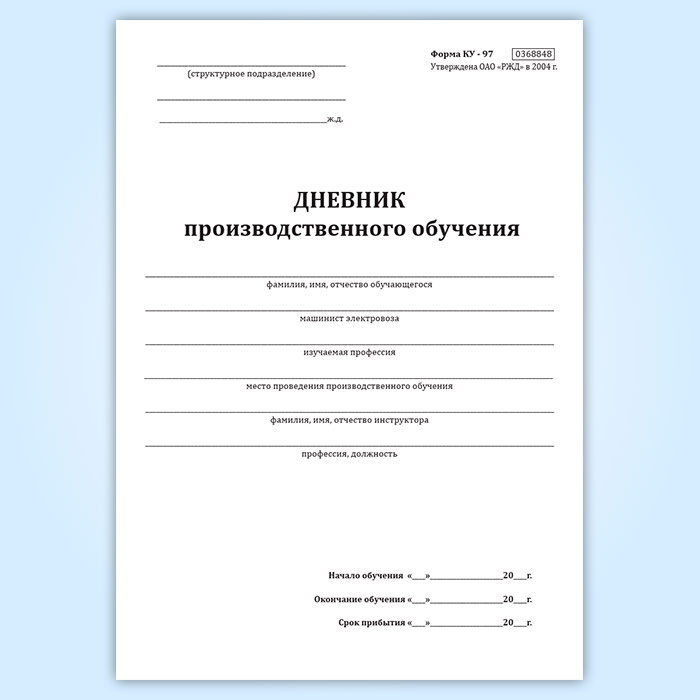 Дневник производственного обучения (форма КУ-97) в Магнитогорске купить