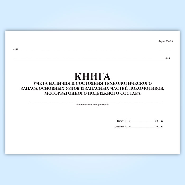 Книга учета наличия и состояния технологического запаса основных узлов и запасных частей локомотивов, моторвагонного подвижного состава (форма ТУ-20) в Магнитогорске купить