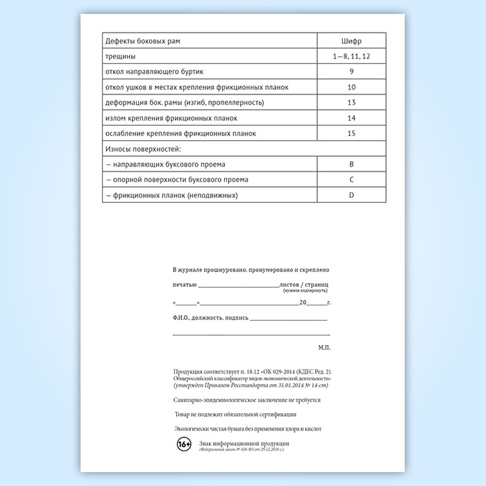 Журнал учета результатов осмотра и дефектоскопирования боковых рам тележек грузовых вагонов в Магнитогорске купить