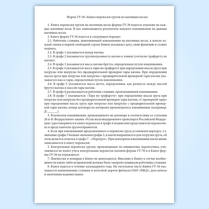 Книга перевески грузов на вагонных весах (форма ГУ-36) в Магнитогорске купить