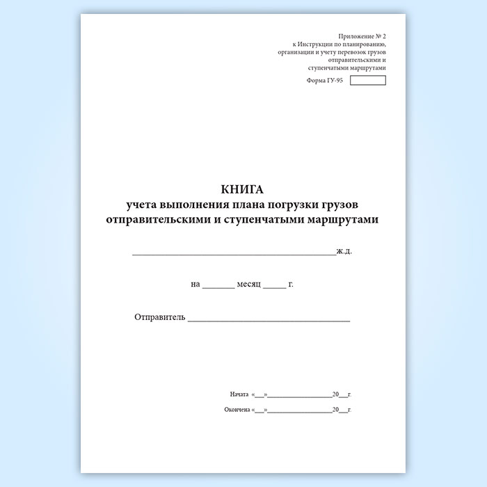 Книга учета выполнения плана погрузки грузов отправительскими и ступенчатыми маршрутами (форма ГУ-95) в Магнитогорске купить