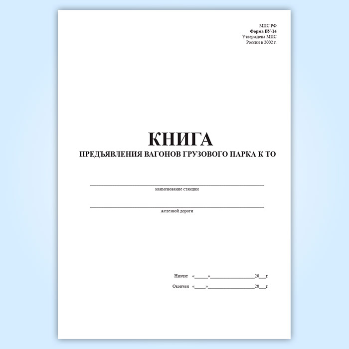 Книга предъявления вагонов грузового парка к ТО (форма ВУ-14) в Магнитогорске купить