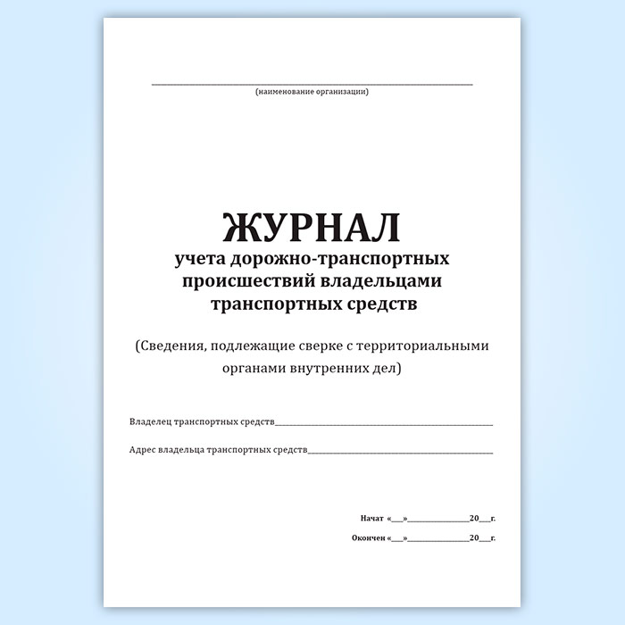 Журнал учета дорожно-транспортных происшествий владельцами транспортных средств (Сведения, подлежащие сверке с территориальными органами внутренних дел) в Магнитогорске купить