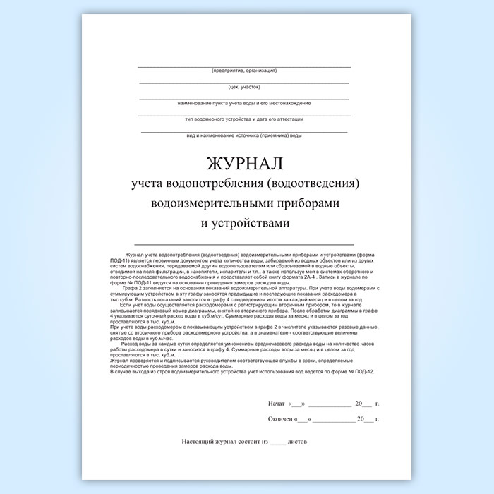Журнал учета водопотребления (водоотведения) водоизмерительными приборами и устройствами (форма ПОД-11) в Магнитогорске купить