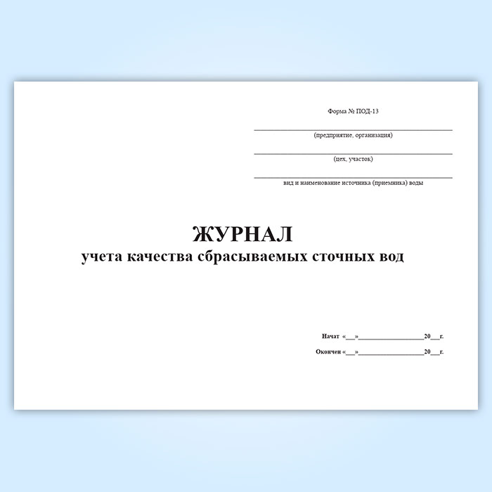 Журнал учета качества сбрасываемых сточных вод (форма ПОД-13) в Магнитогорске купить