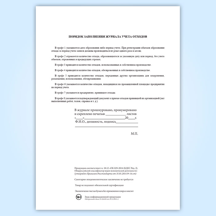 Журнал первичного учета отходов в Магнитогорске купить