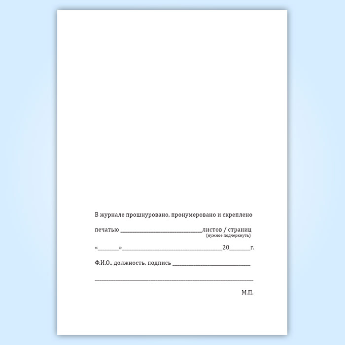 Вы получаете печатную продукцию прошнурованной и c местом для вашей печати в соответствии с действующими нормативными документами: