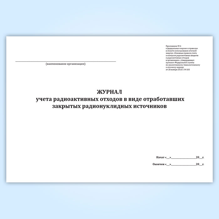 Журнал учета радиоактивных отходов в виде отработавших закрытых радионуклидных источников в Магнитогорске купить