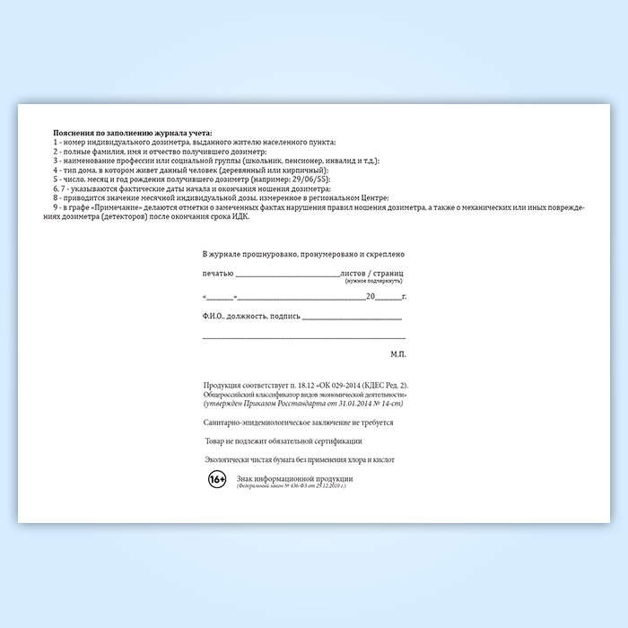 Журнал учета индивидуального дозиметрического контроля внешнего гамма-излучения в Магнитогорске купить