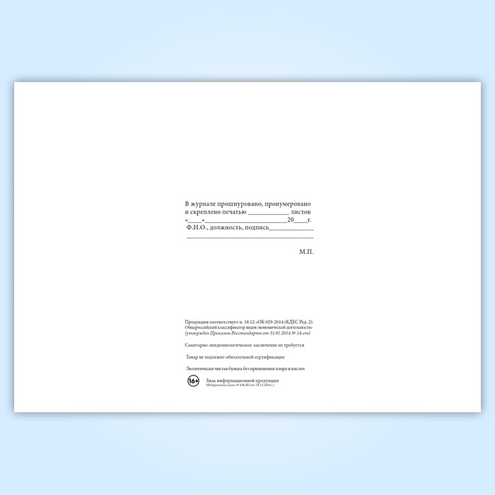 Вы получаете печатную продукцию прошнурованной и c местом для вашей печати в соответствии с действующими нормативными документами: